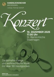 Der Handglockenchor Wiedensahl zählt zu den größten und besten Ensembles seiner Art in Deutschland. Mit musikalischer Hingabe und präzisem Zusammenspiel begeistert das Ensemble seit fast 40 Jahren das Publikum in der Region und weit darüber hinaus. In diesem Jahr machte der Chor mit einer zweiwöchigen Konzertreise nach Island und in die USA sowie mit dem Gewinn des 1. Preises beim Deutschen Orchesterwettbewerb in Wiesbaden auf sich aufmerksam. Der Einlass zum Konzert beginnt um 16:15 Uhr. Der Eintritt ist frei. Am Ausgang wird um eine Spende gebeten.